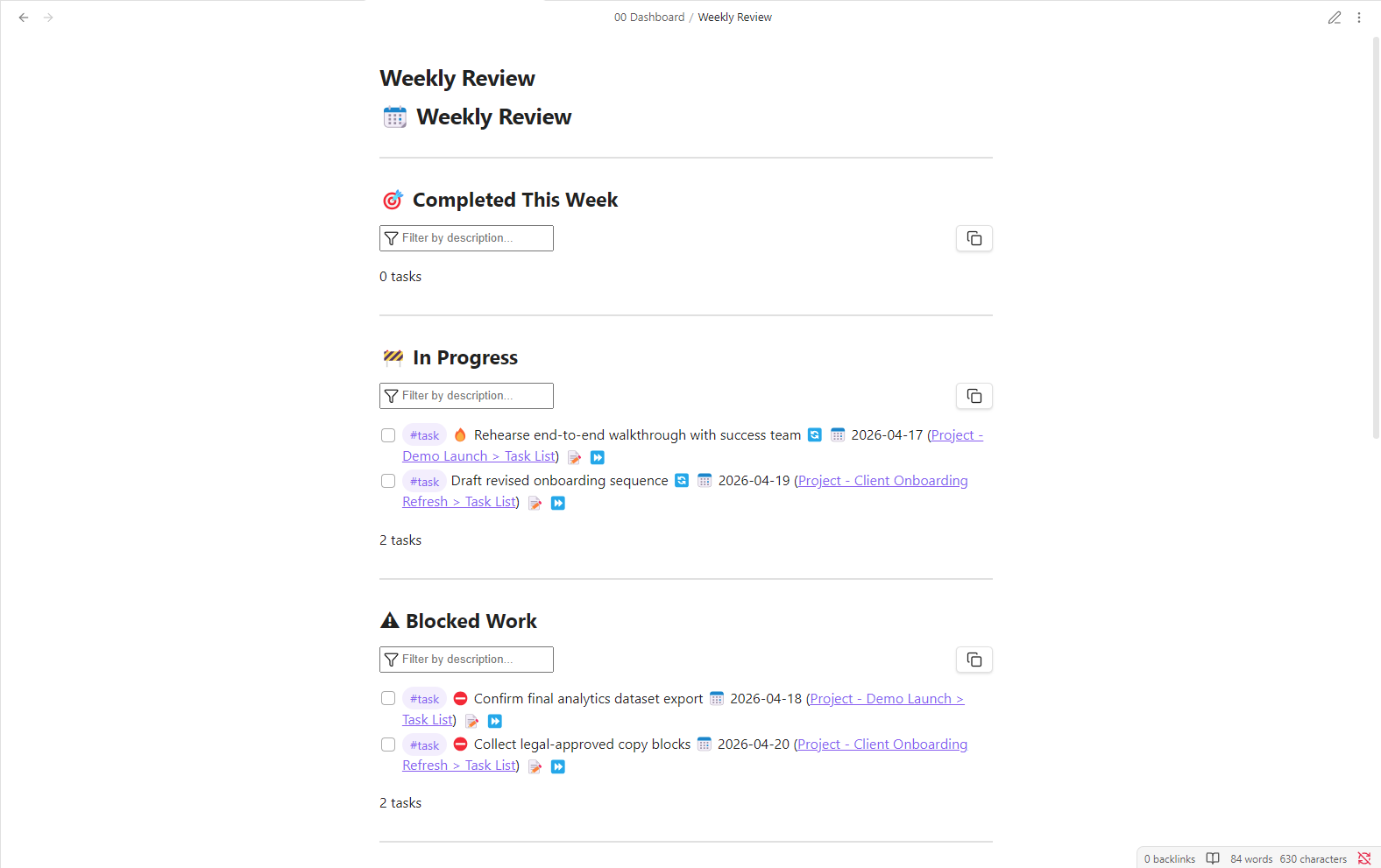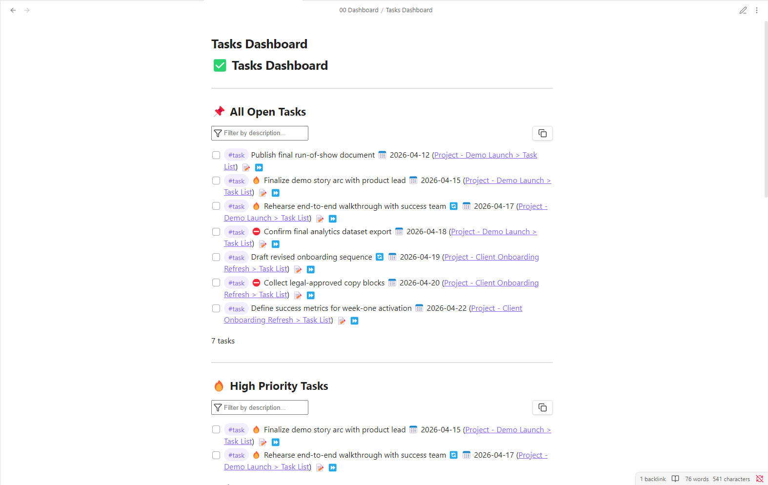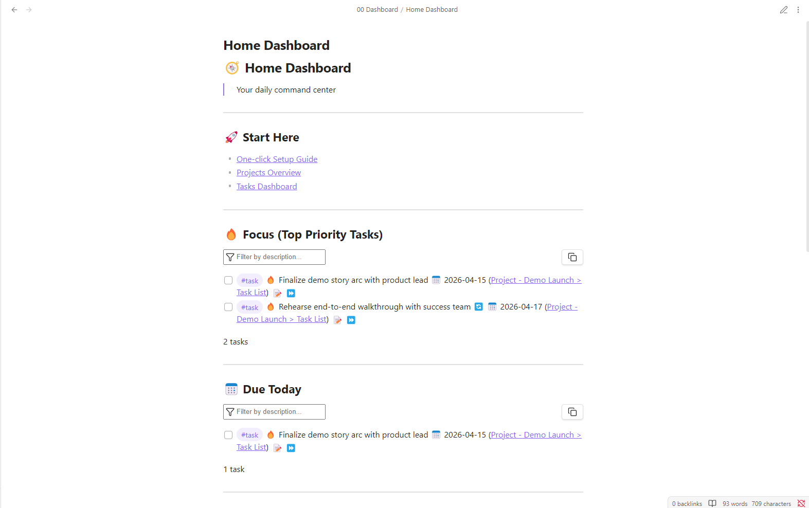 See both the command-center dashboards and example project notes included in the starter.